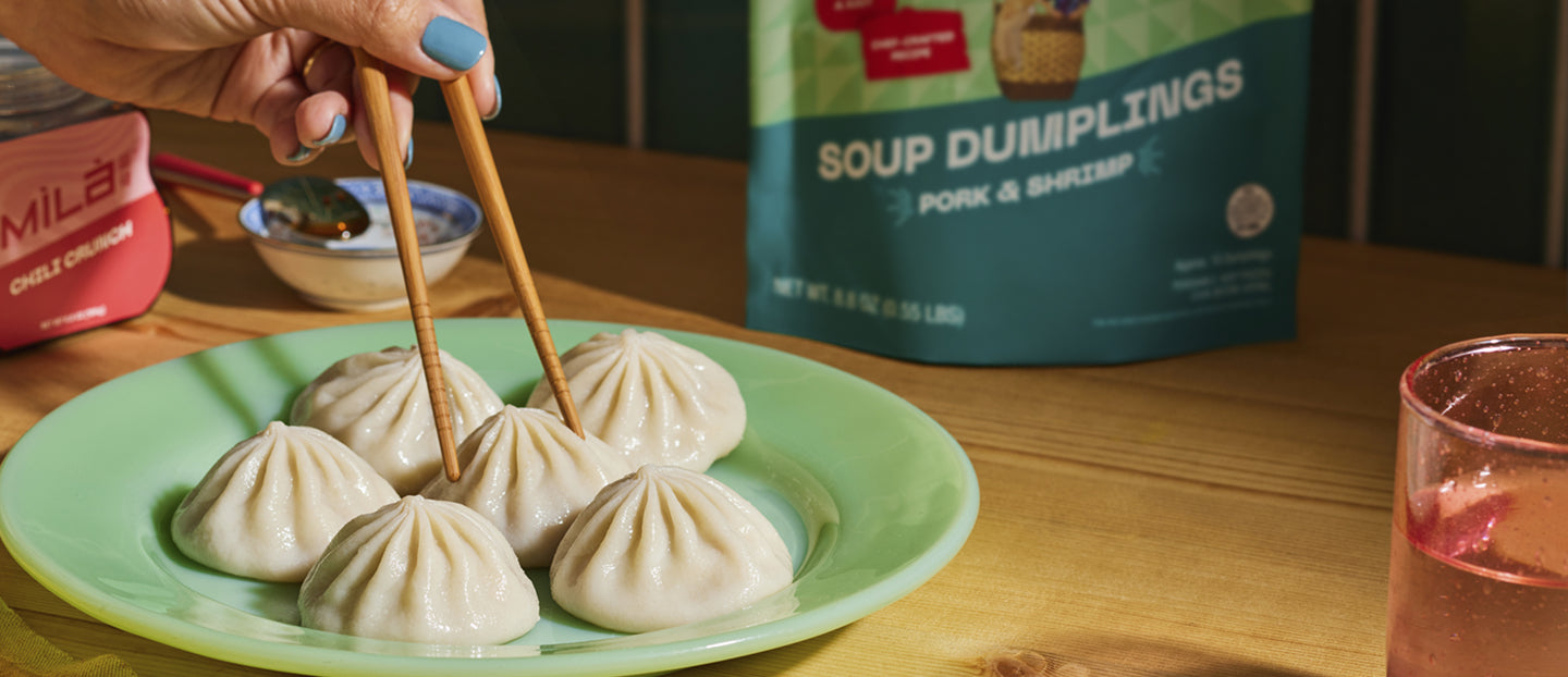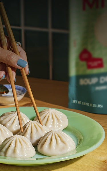 Take your MìLà Pho Beef Soup Dumplings to the next level with this mouthwatering basil wrap. Steam these pho-inspired soup dumplings to juicy perfection, wrap them in fresh basil, dip in a tangy sriracha-lime dumpling sauce, and top with fresh jalapeños for an extra kick. It’s the ultimate way to enjoy MìLà’s Pho Xiao Long Bao at home — fragrant, flavorful, and the perfect bite of pho in one dumpling.
