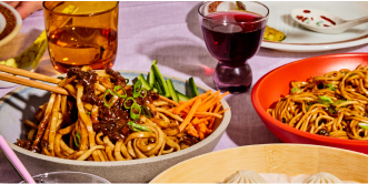 Chewy wheat noodles topped with a rich soybean-based sauce. Savory and a little sweet, this Beijing classic combines premium dark soy with fermented soybean paste in a thick, comforting sauce. Top it with carrot and cucumber slices for freshness!