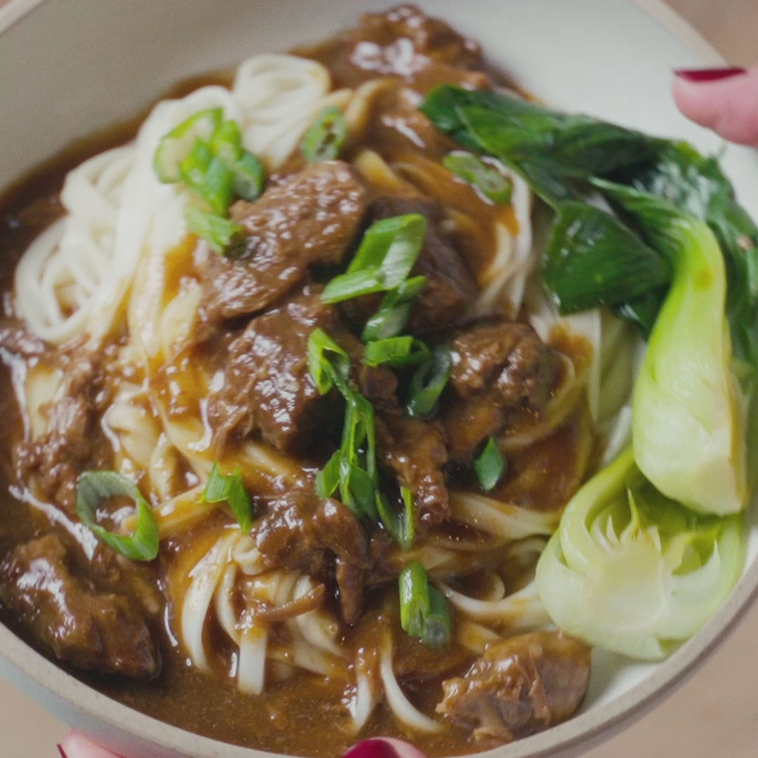 Celebrate this Lunar New Year with the bold, rich flavors of MiLa’s Cantonese-inspired Braised Beef Noodles. Our tender beef is slow-braised to perfection in a thick and savory blend of oyster sauce, chu hou sauce, soy sauces, and aromatic spices for a deeply satisfying taste. This mix coats our springy, hearty noodles perfectly, delivering a satisfying bite every time.